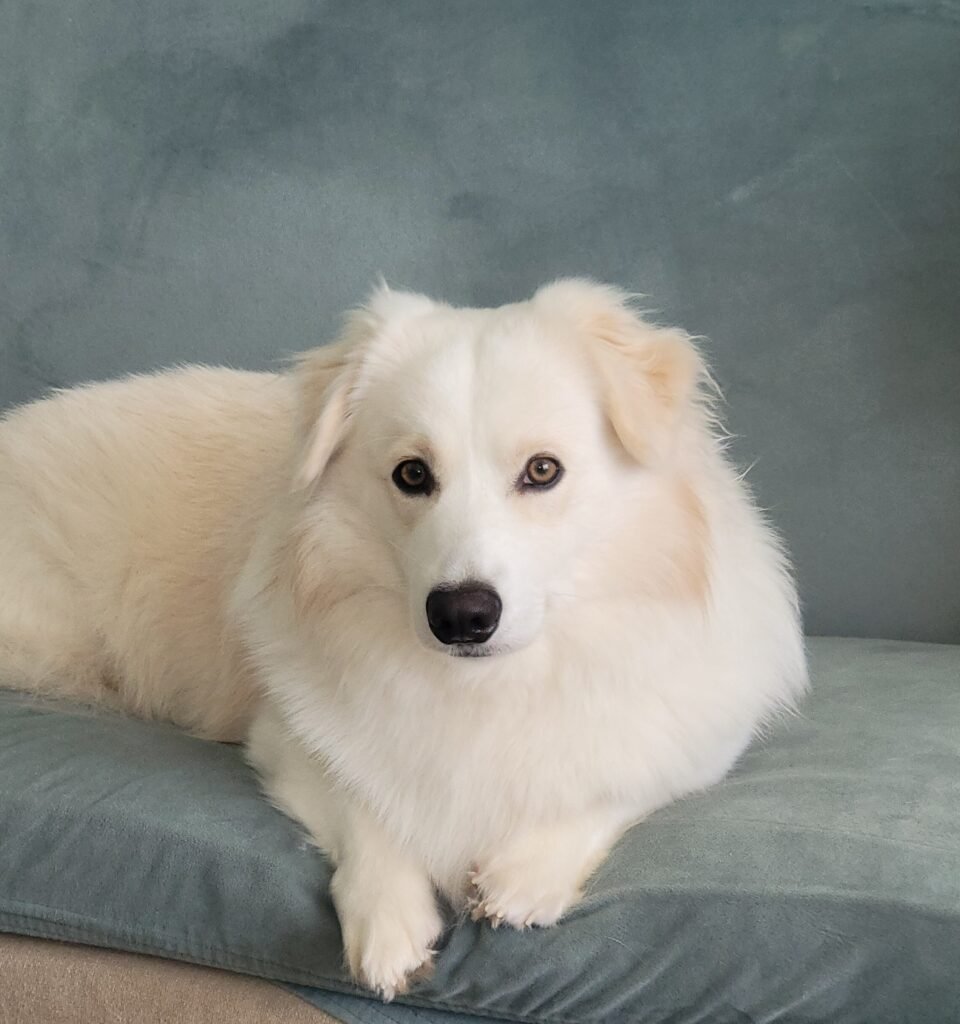 Merlin Boy carries an old soul in a fluffy body. He’s the thinker, the observer, the dog who seems to be contemplating the mysteries of the universe while everyone else is chasing squeaky toys. His affection is precious because you have to earn it — a kiss from Merlin is a badge of honor. And with the way he inspects food, savors flavors, and judges snacks like a Michelin critic, it’s clear he was a chef in a past life. Wise, discerning, and deeply loyal, he’s the quiet heartbeat of the pack.